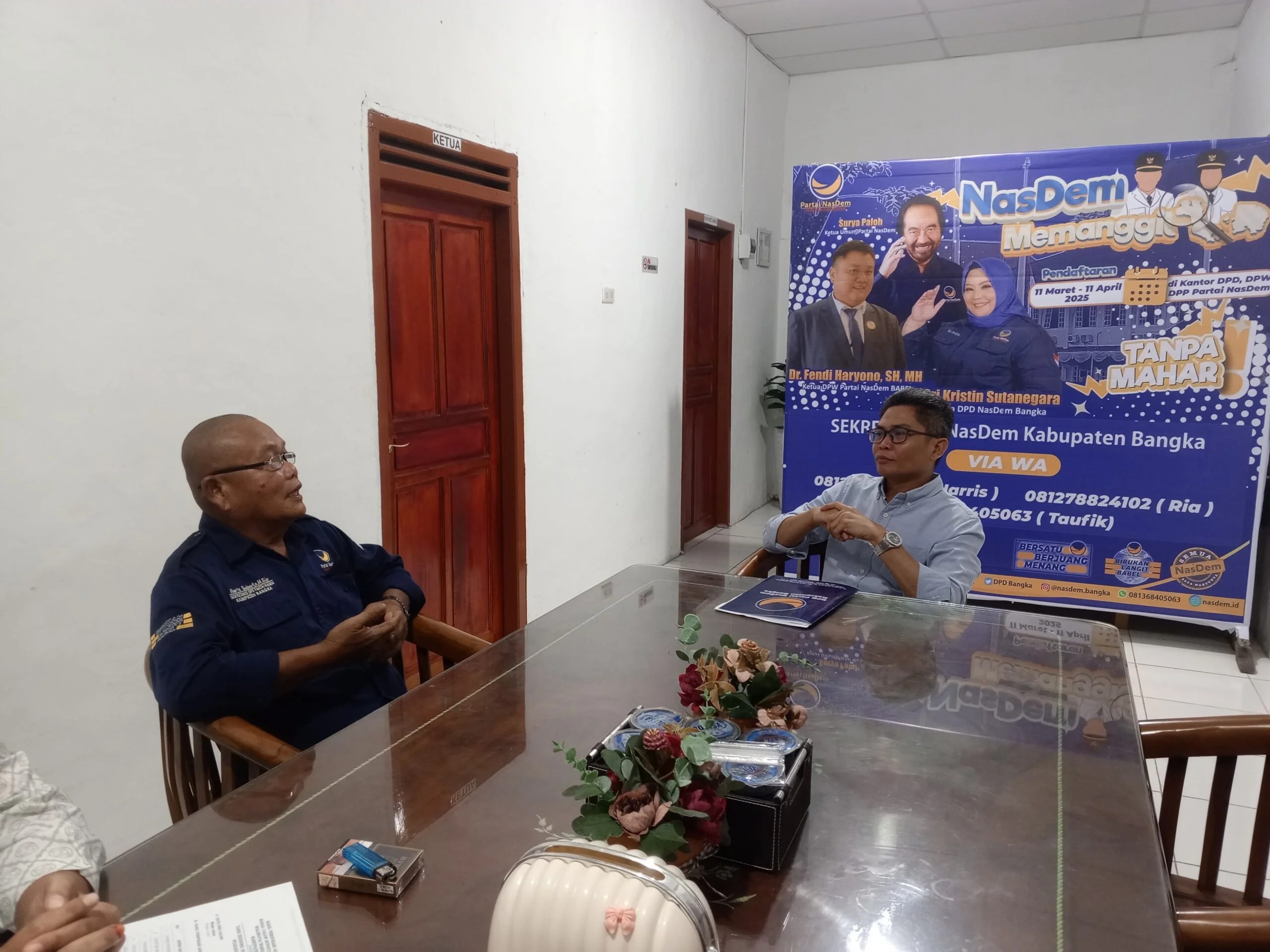 Tak hanya datang seorang diri, Fauzan hadir bersama rombongan sebagai bentuk keseriusannya dalam mengikuti kontestasi Pilkada 2025. Kehadirannya langsung disambut oleh jajaran pengurus Partai NasDem Kabupaten Bangka, termasuk Sekretaris Partai, Haris.